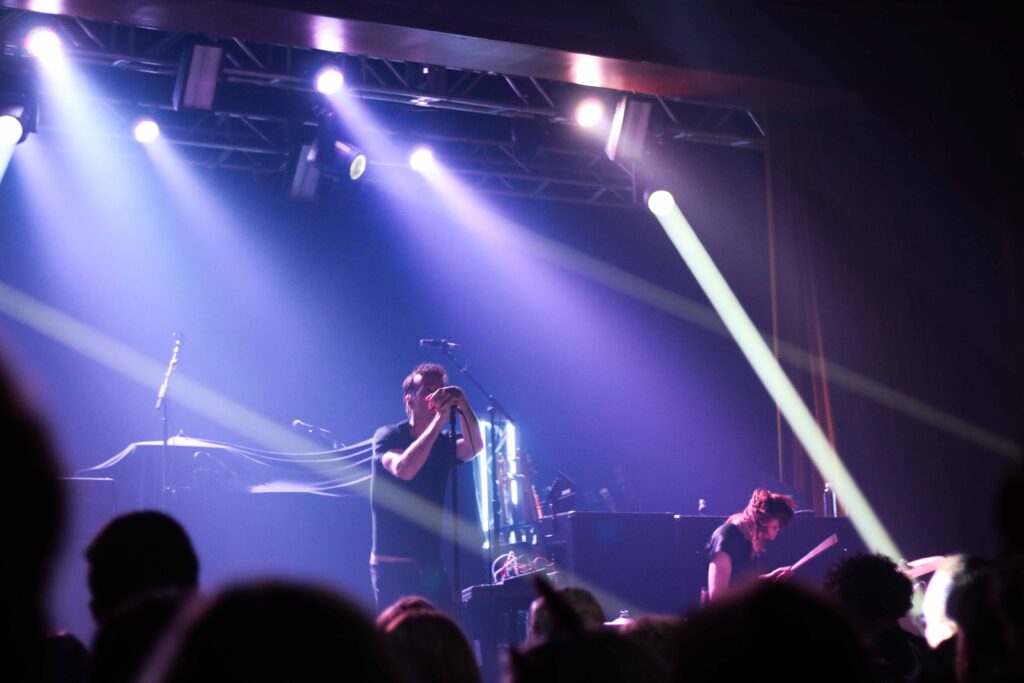 The night started off with electronic act TR/ST. With a synth-driven sound that featured haunting vocals and rhythmic melodies, TR/ST created a moody yet engaging atmosphere. Fans were treated to old and new favorites like “Sulk,” “Shoom,” and “Bicep,” so whether they have been with TR/ST since the beginning or are new to the party, they were able to get a taste of the different eras. And although vocalist Robert Alfons was obscured mostly by shadows, he still owned the stage and got everyone moving. Such minimal lighting meant more attention to the music and vocals, and at the end of the day, these are the elements of a concert that matter most.