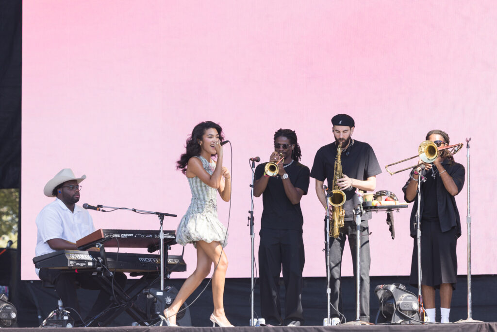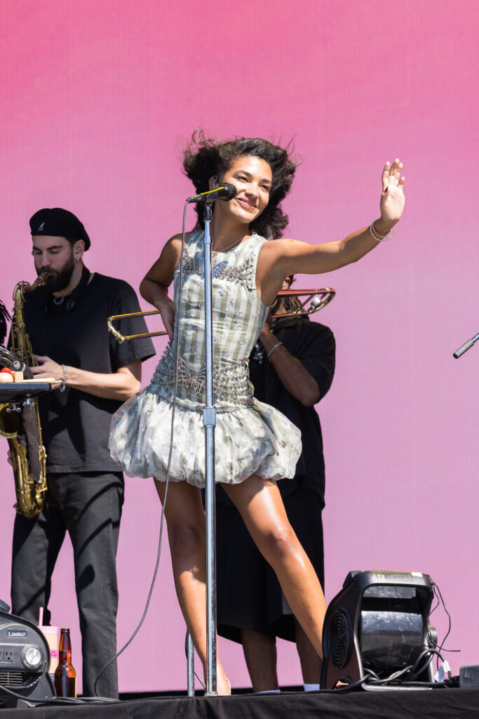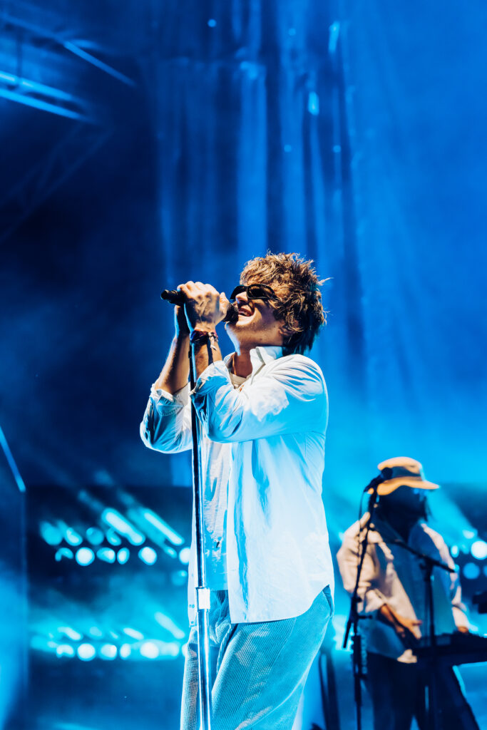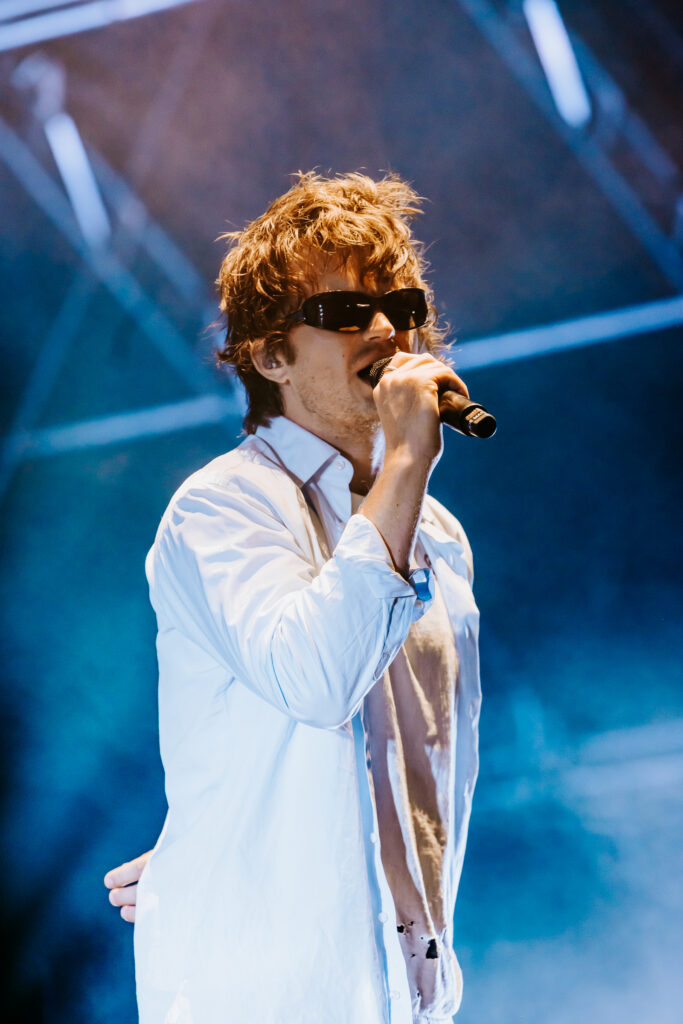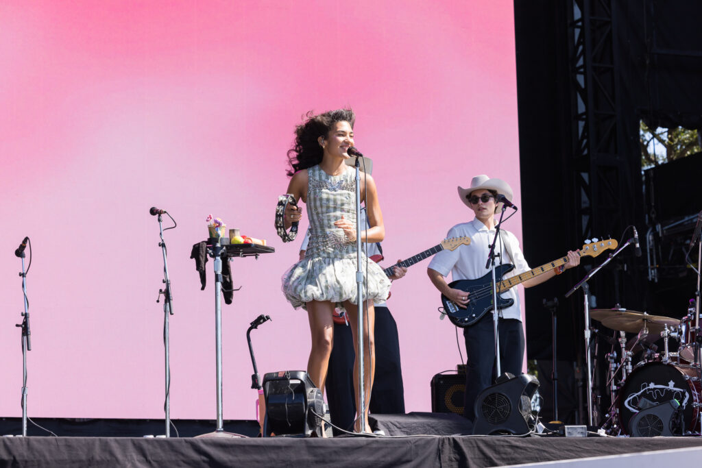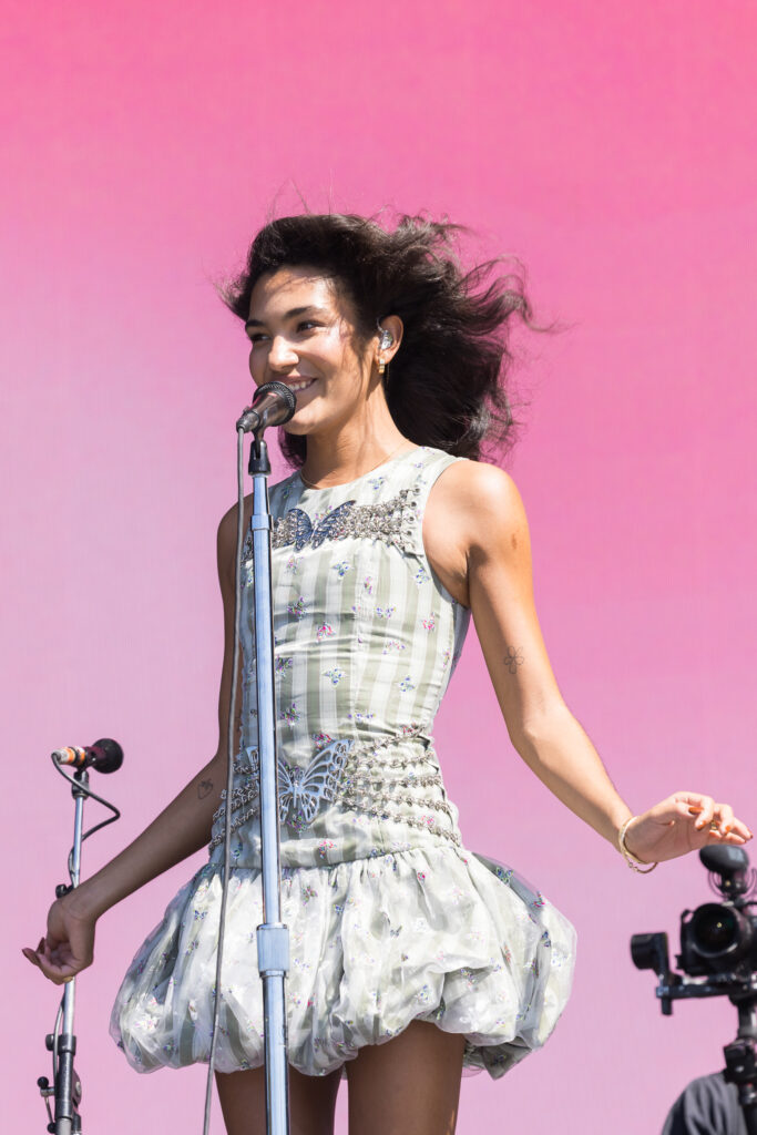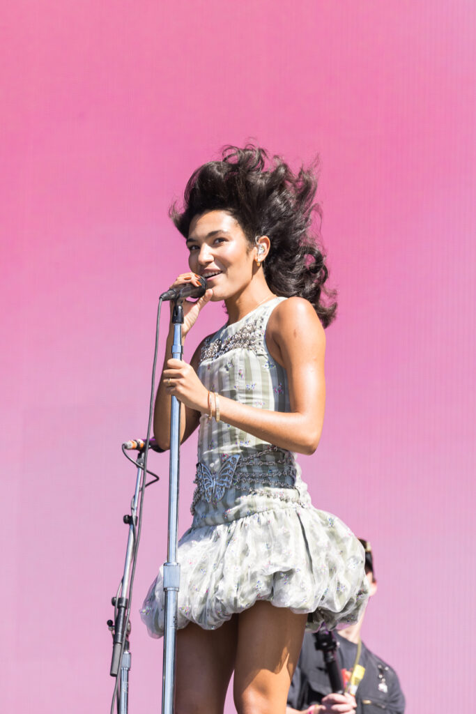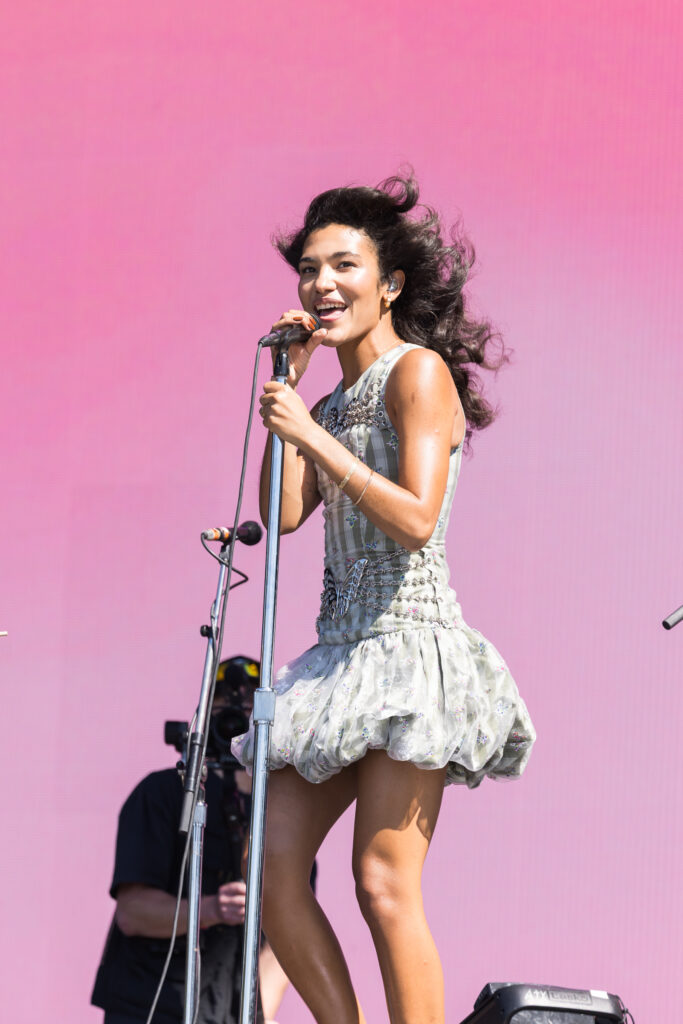 Saturday was a packed day of back to back must see artists, starting off with Yoke Lore at the Miller Lite stage at 1:30pm. For a set pretty early in the day, he managed to draw a pretty big crowd, unfortunately he was having some tech issues due to the heat but he managed to play along and handled the set like a true professional. The next set that was a must catch was Olivia Dean at the American Express stage, the English singer drew in a pretty big crowd as well, she expressed excitement in being back for weekend 2 and how she was excited to play songs from her latest album “The Art of Loving”. She played songs such as “Nice to Each Other”, “Messy” and “Man I Need”, she is definitely someone that should be on everyone’s radar.