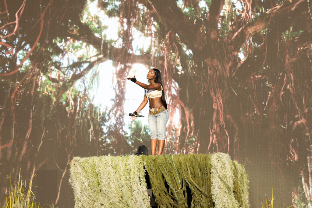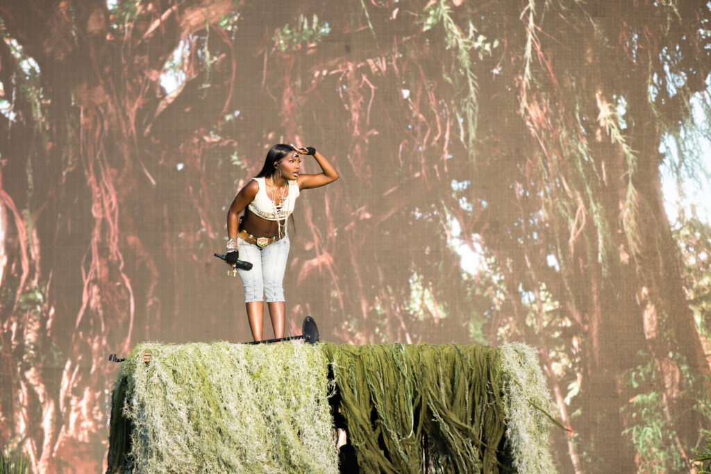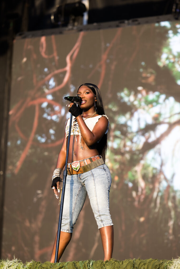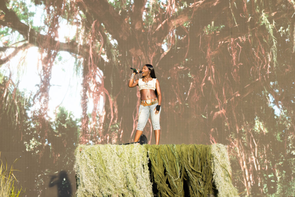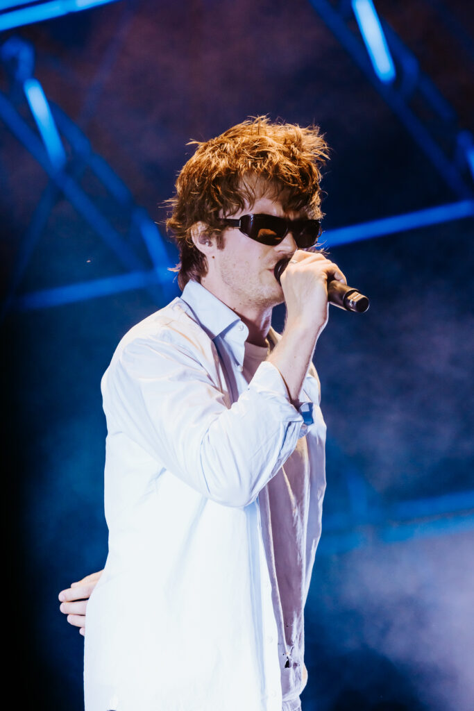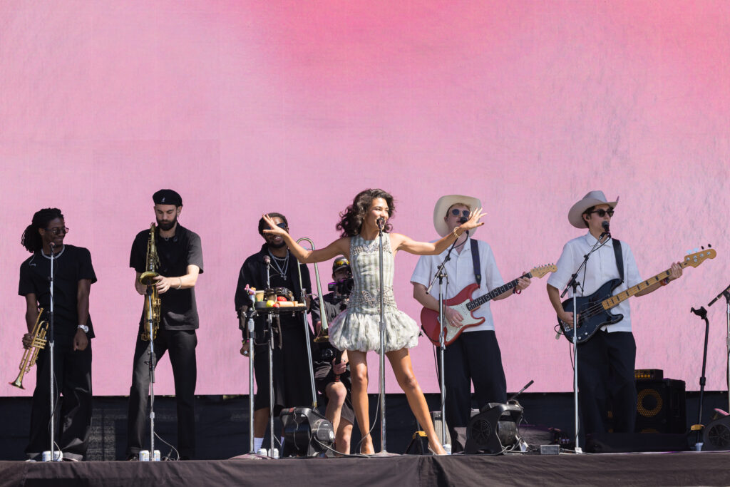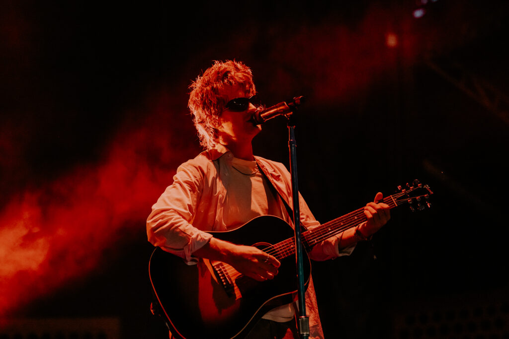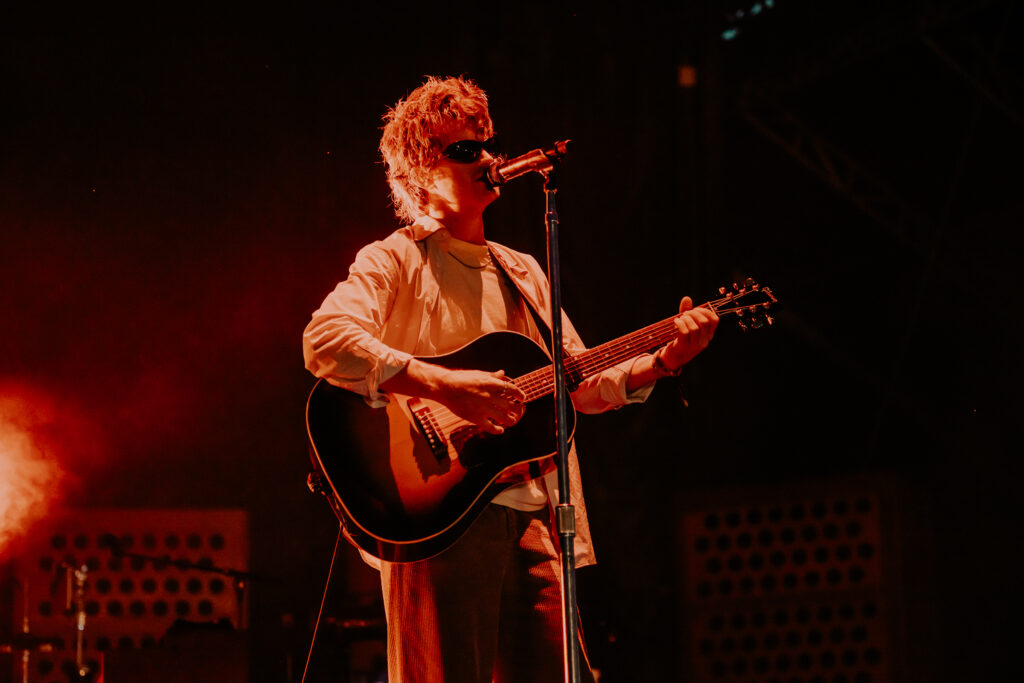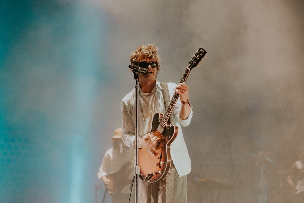 Saturday was a packed day of back to back must see artists, starting off with Yoke Lore at the Miller Lite stage at 1:30pm. For a set pretty early in the day, he managed to draw a pretty big crowd, unfortunately he was having some tech issues due to the heat but he managed to play along and handled the set like a true professional. The next set that was a must catch was Olivia Dean at the American Express stage, the English singer drew in a pretty big crowd as well, she expressed excitement in being back for weekend 2 and how she was excited to play songs from her latest album “The Art of Loving”. She played songs such as “Nice to Each Other”, “Messy” and “Man I Need”, she is definitely someone that should be on everyone’s radar.