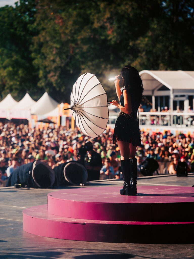 From 5pm until about 7pm – the choices were getting more difficult on picking artists to see. Latin Mafia, Fujii Kaze, and Magdalena Bay all played pretty close to each other. Pierce The Veil and Doechii were also playing close to the same time and we managed to catch both of these artists. Each one brought a unique vibe to the festival and had us amazed at their sets. The next round of artists performing close to each other were Zeds Dead, Japanese Breakfast and DJO. Each of these artists brought in incredible sized crowds, whether attendees were wanting to catch an Electronic set or an Indie Pop vibe, there was something for everyone to see.