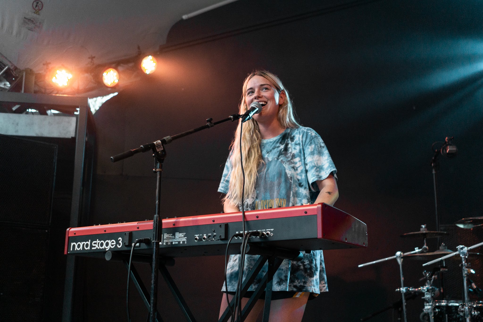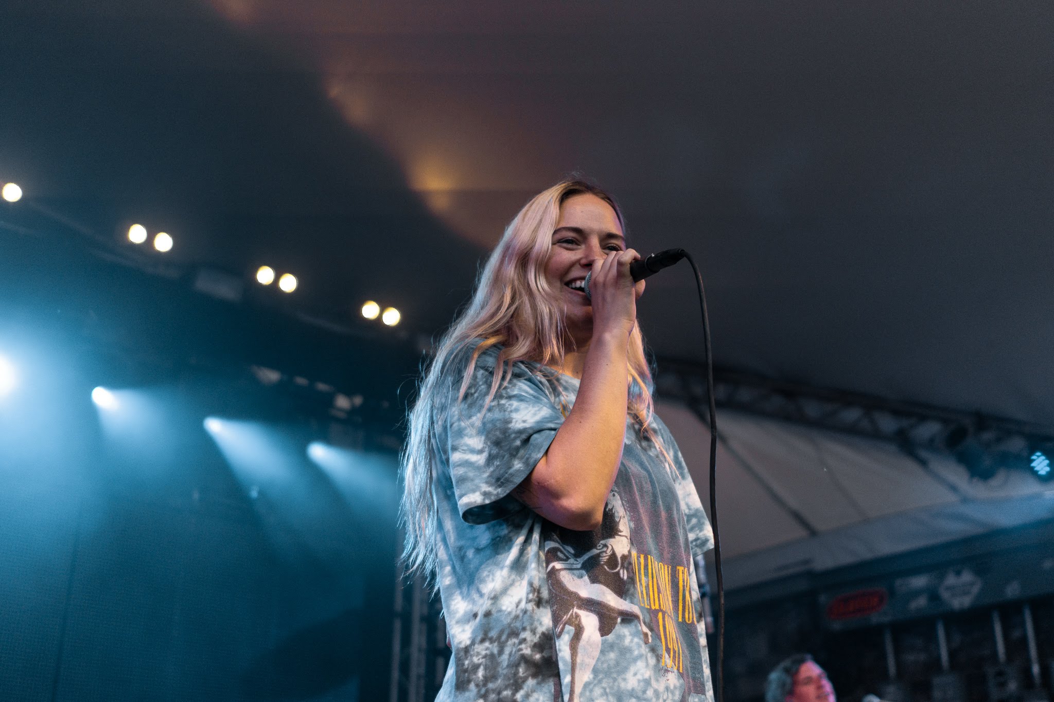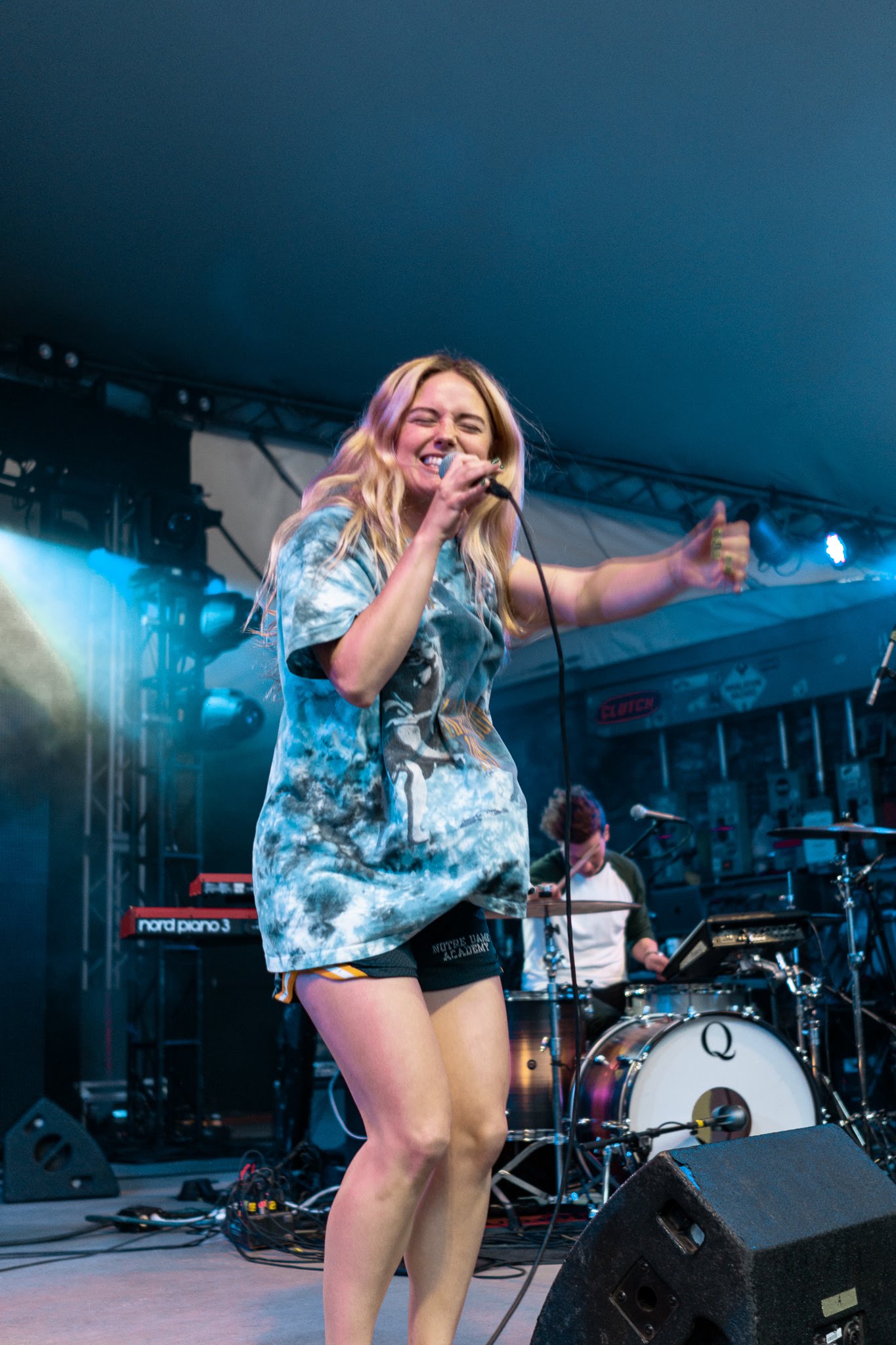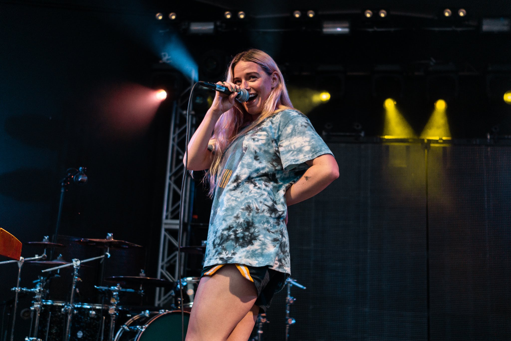 She giggles between songs, even going so far as convincing the crowd to engage her antics—making call and response puking noises at the cloying humidity that precedes the incoming rainstorm. “You guys have given her too much power,” her drummer comments at one point, as she dances around gleefully. From her lighthearted collaboration with Louis the Child “Right To It” to a piano ballad cover of “Pursuit of Happiness,” Ashe’s repertoire is as diverse as her facial expressions and dance moves. They’re equally funny and endearing, interrupted with frequent hair flips and t-shirt fanning to cool off. By the time she takes a final bow, the crowd is loosened up and ready for more.